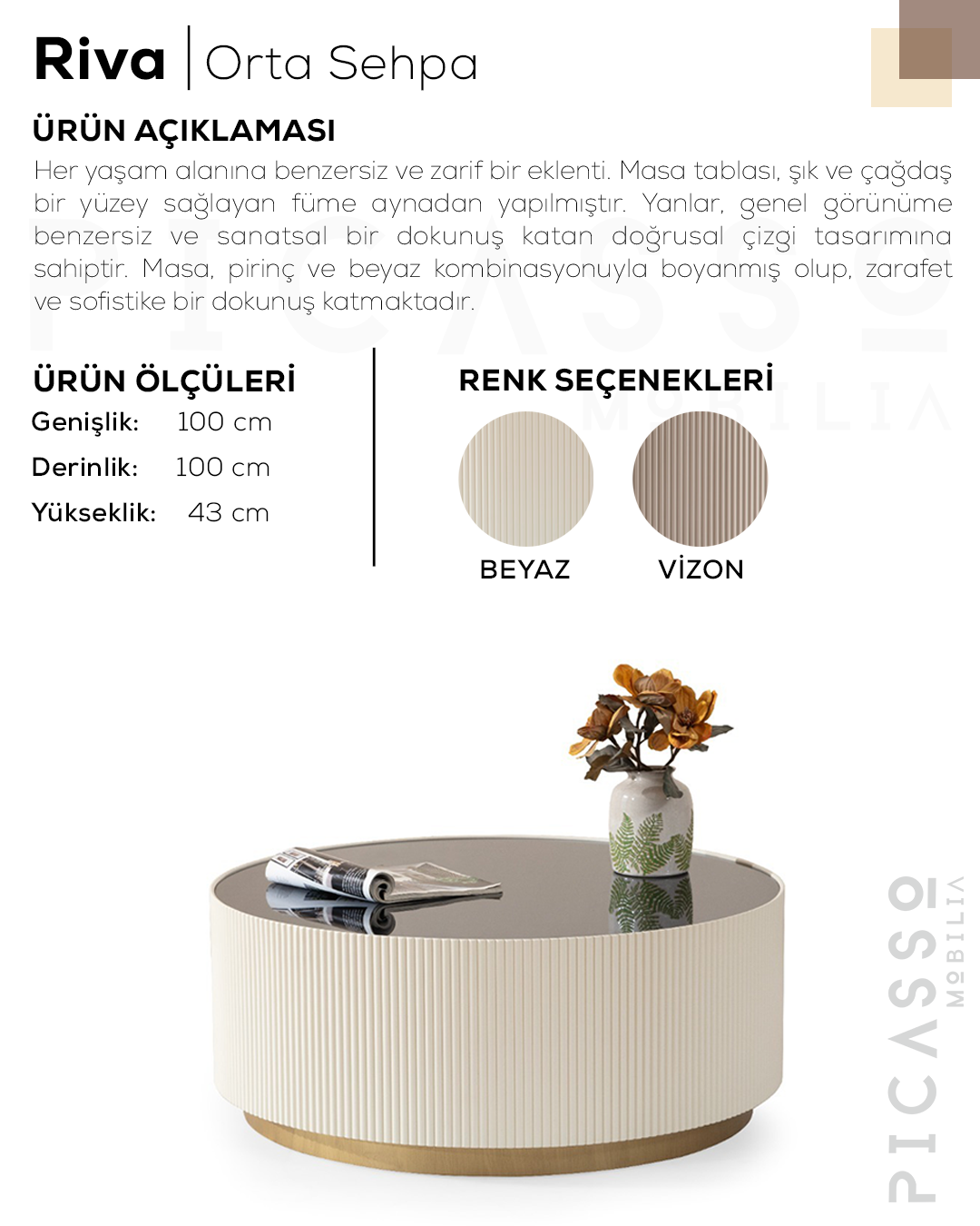 Riva Ecru Orta Sehpa, doğal ecru tonu ve zarif tasarımıyla şıklığı simgeler.